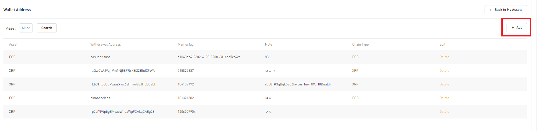 출금을 하기위해선 Assets로 먼저 들어가 줍니다.