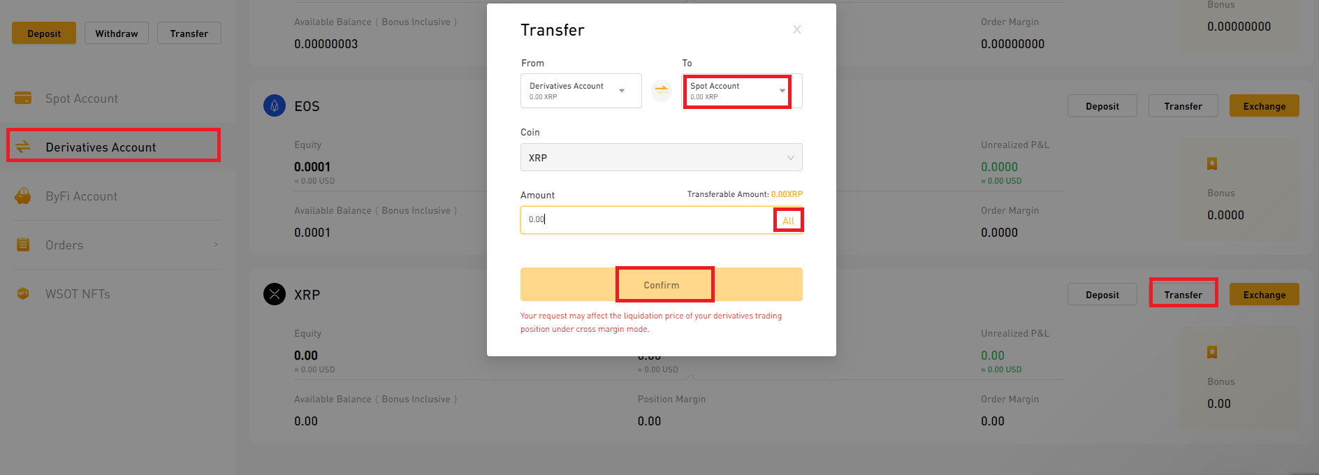 XRP - Transfer를 누르셔서 Spot으로 옮겨줍니다