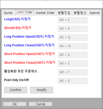 1. 매뉴얼 버튼 클릭 2. 매뉴얼 확인 - Ctrl+ 1 .......0 : 호가선택 - Ctrl+ C : 주문취소 - Ctrl+ ↑ : Long Posit...